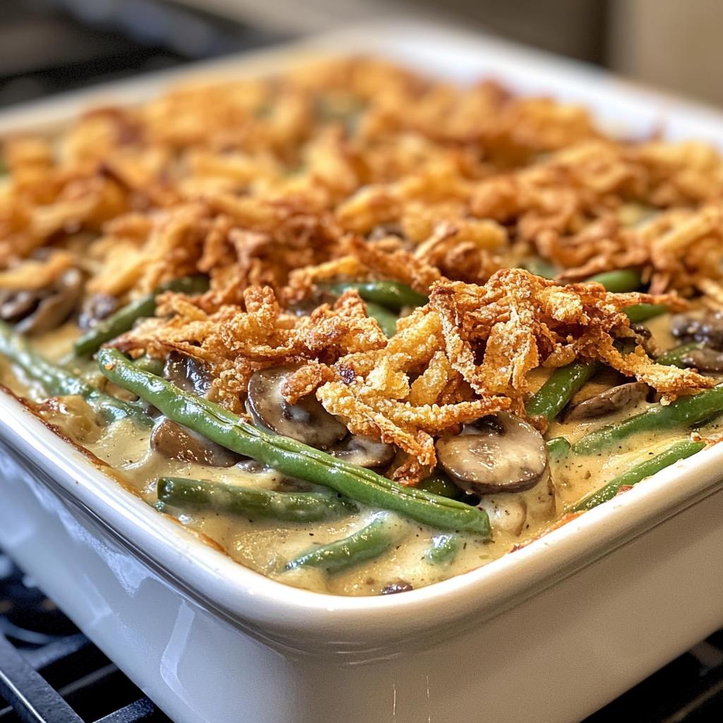 Keywords: green bean casserole, classic recipe, holiday side dish, easy casserole